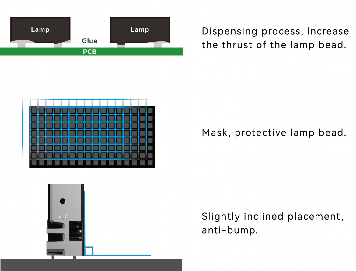 One of the standout features of LEDMAN’s LED video screens is their unique and stable triangular positioning system. This design incorporates a unified magnet distribution with 22 support positions, ensuring that the media wall remains secure and stable during use. This innovative approach enhances the overall structural integrity, allowing for reliable performance even in high-traffic areas or dynamic environments.