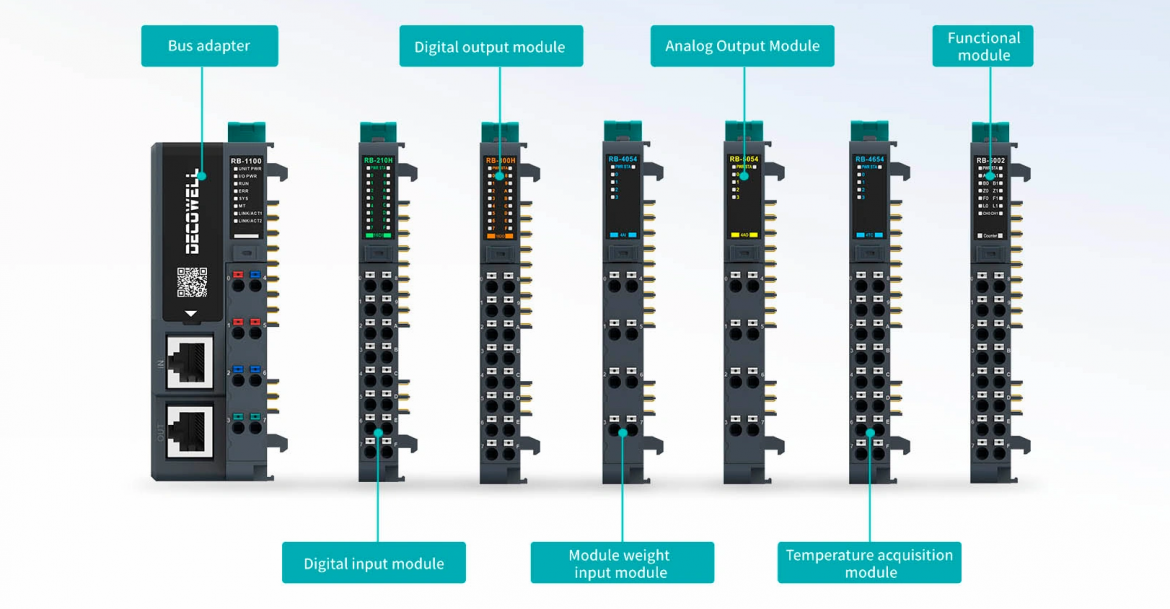 The RB series I/O system offers a rich variety of modules, including digital and analog inputs and outputs, temperature acquisition, and communication modules. This versatility ensures that DECOWELL can meet diverse customer needs across various applications. Whether it’s for a small project or a large-scale industrial operation, the flexibility of these modules provides a tailored solution for every requirement.